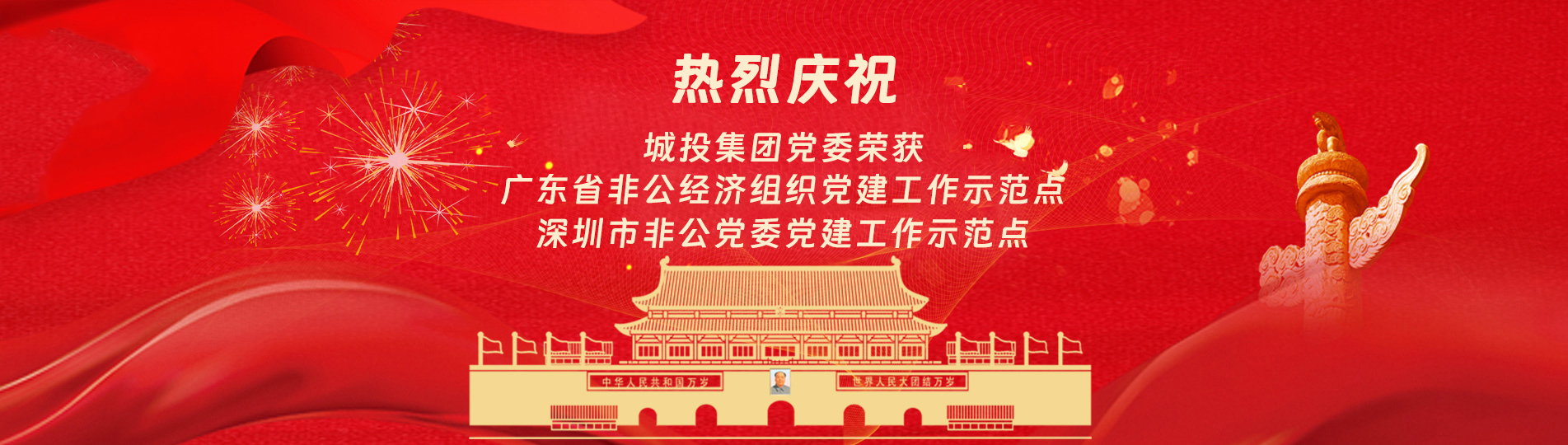 在上級黨委的正確領(lǐng)導下,在城投集團的大力支持下,集團黨委緊緊圍繞企業(yè)發(fā)展戰(zhàn)略,將黨建引領(lǐng)核心貫穿始終,以“五心”工程(即思政建設(shè)“核心”工程、經(jīng)營發(fā)展“中心”工程、企業(yè)文化“向心”工程、黨建品牌“匠心”工程、服務(wù)基層“愛心”工程)為抓手,大膽探索,勇于突破和創(chuàng)新,不斷形成城投黨建特色,有效輸出城投實踐經(jīng)驗,充分發(fā)揮“紅色引擎”作用,先后獲得“深圳市非公黨委黨建工作示范點”、“深圳市兩新組織黨建工作示范點”、“深圳市文明單位”、“深圳市先進基層黨組織”、“廣東省非公有制經(jīng)濟領(lǐng)域黨建工作示范點”等榮譽稱號。